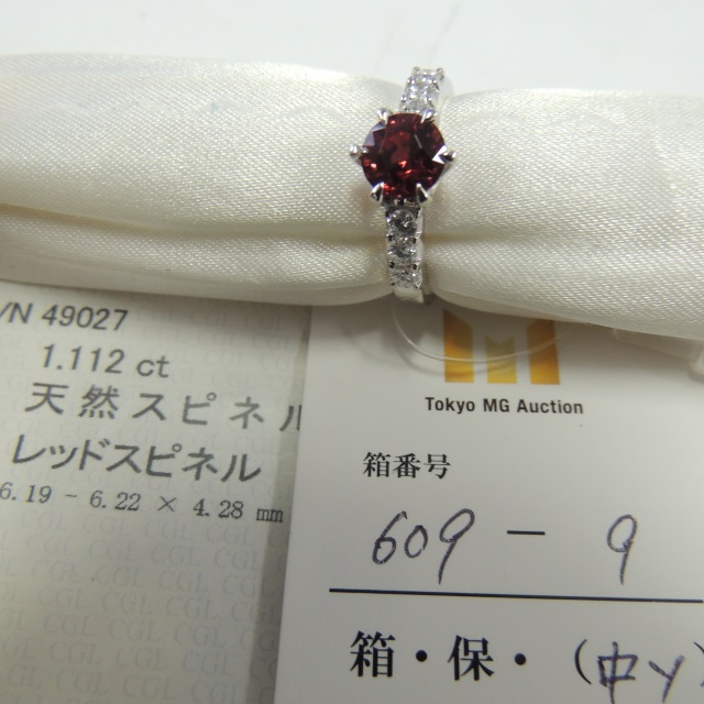 リング ッレッドスピネル ダイヤ Pt900 4.90g 中ソ 石目:1.112 D0.29