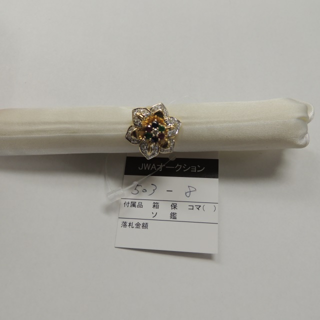 リング マルチ サファイア ルビー ダイヤ K18 10.70g 石目:E0.15 S0.20 R0.17 D0.51