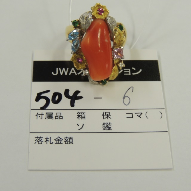リング サンゴ マルチ ダイヤ K18/Pt900 12.20g 石目:D0.04