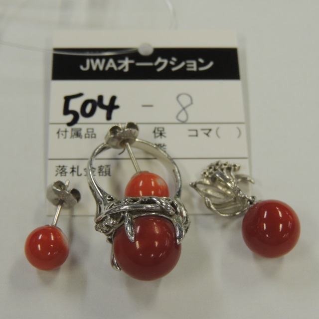 リング ペントップ ピアス 3点セット サンゴ ダイヤ Pt900 16.60g 石目:D0.10