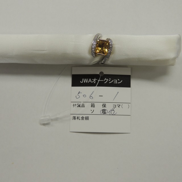 リング イエローベリル ダイヤ K18/Pt900 9.30g 鑑 石目:1.79 D0.20