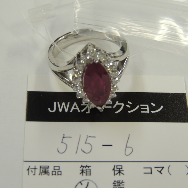 リング ルビーダイヤ 750WG 9.40g 中ソ 石目:R2.54 D0.58 透明物質認む