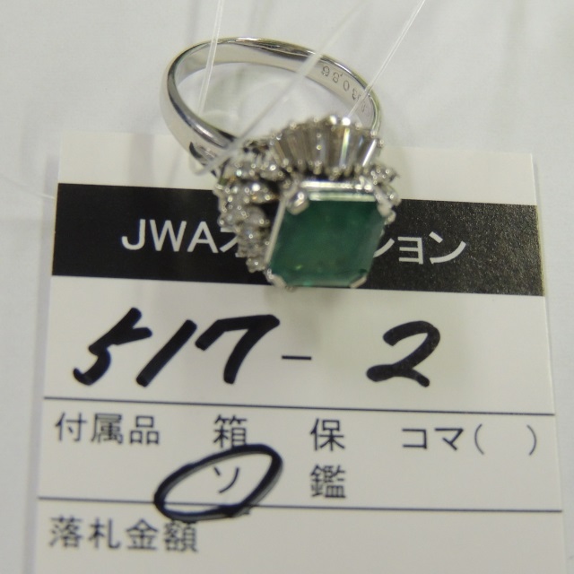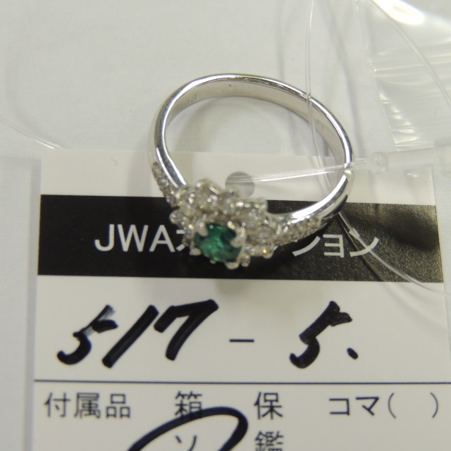 リング エメラルド ダイヤ PT900 8.60g GRJソ 石目:E2.863 D0.86