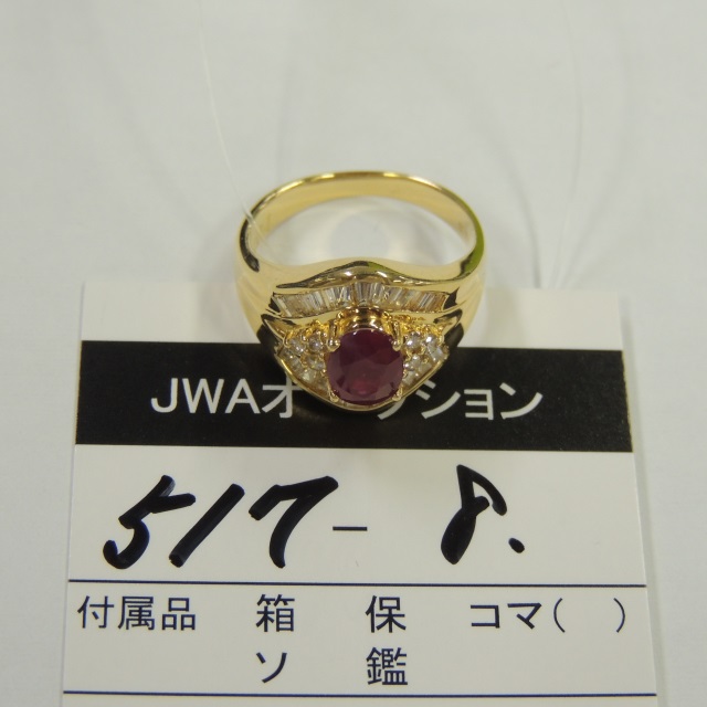 リング ルビー ダイヤ K18YG 4.70g 石目:R1.06 D0.60