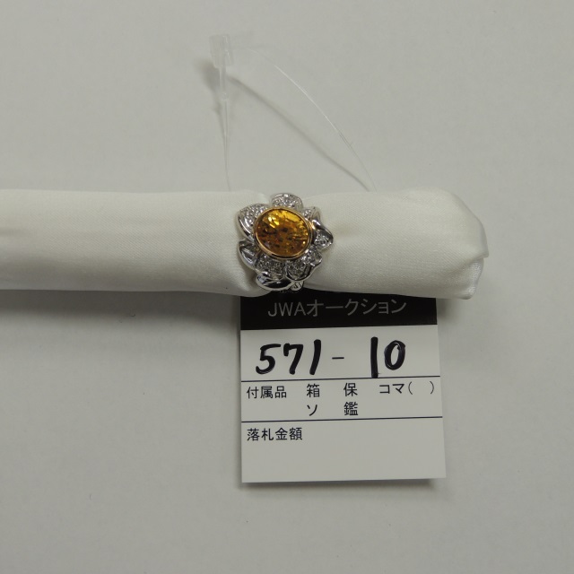 リング イエローサファイア ダイヤ Pt900 13.60g 石目:4.42 0.20