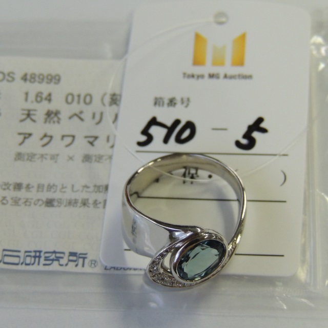 リング アクアマリン ダイヤ Pt900 12.70g 中ソ 石目:1.64 0.10
