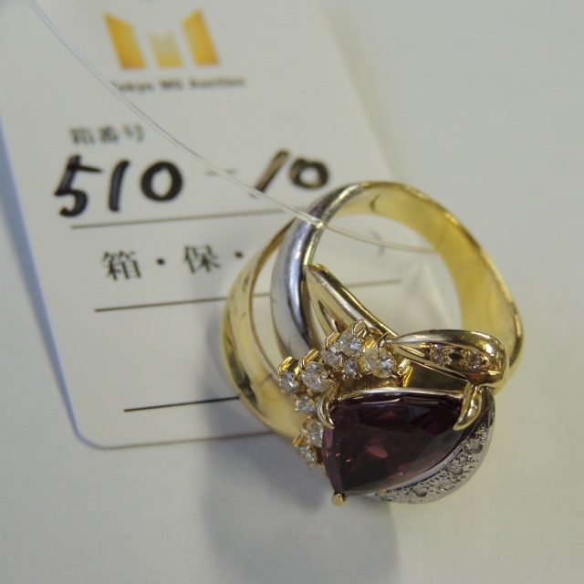 リング ロードライトガーネット ダイヤ K18/Pt900 16.10g 石目:5.40 D0.46