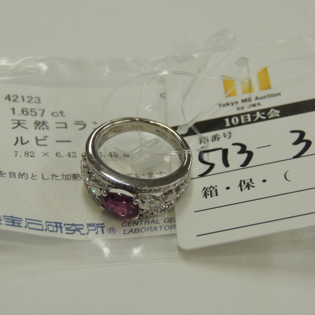 リング ルビー Pt900 10.50g 中ソ 石目:R1.657 0.6