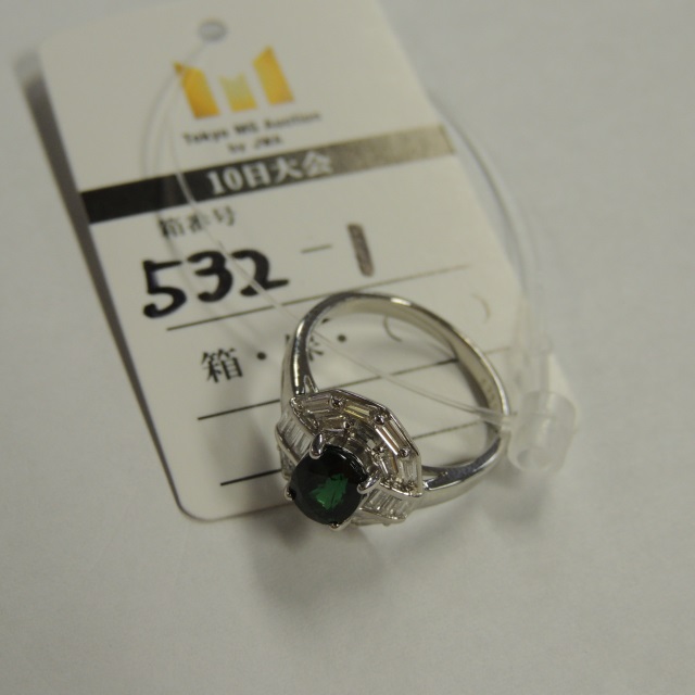 リング グリーンガーネット ダイヤ Pt900 5.60g 石目:1.369 D0.50
