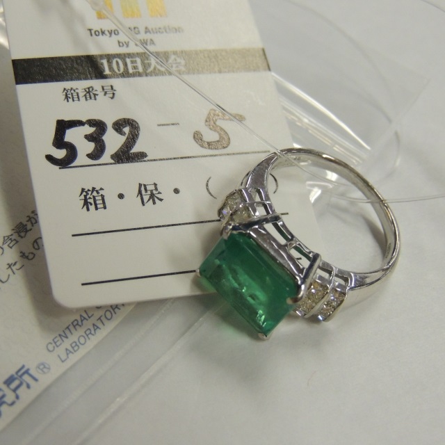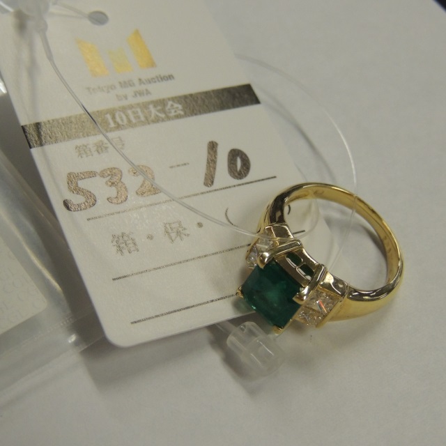 リング エメラルド ダイヤ K18WG 7.70g 中ソ 石目:E5.02 D0.60