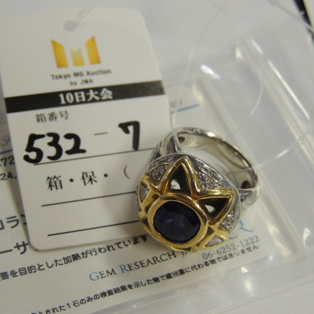 リング サファイア ダイヤ Pt900/K18 25.00g GRJソ 石目:S3.859 D0.482 D0.324