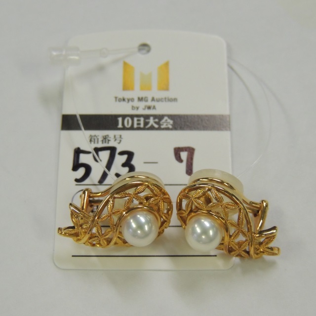 ミキモト パールイヤリング YG/WG 重量キャッチ抜 K18 6.90g 箱