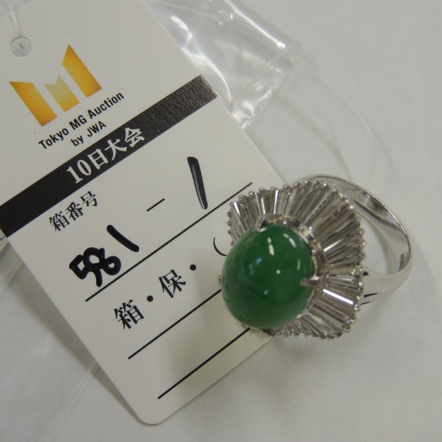 リング ヒスイ ダイヤ Pt900 14.40g 中ソ 石目:1.24