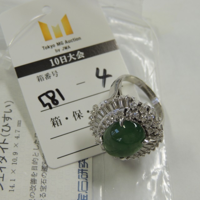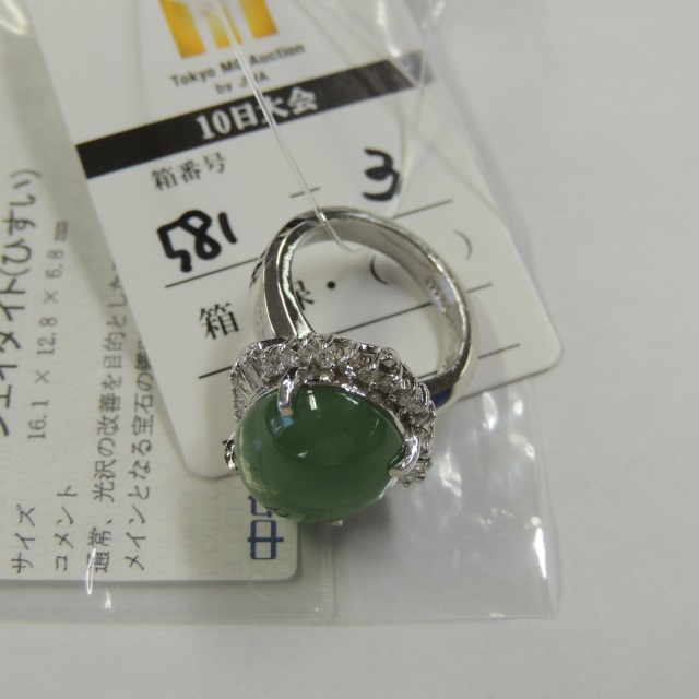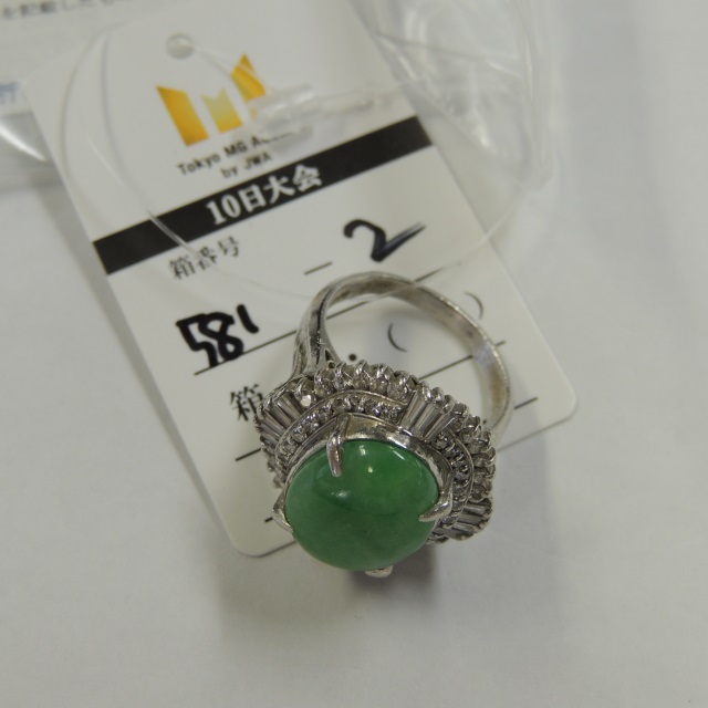 リング ヒスイ ダイヤ Pt900 17.90g 中ソ 石目:2.15