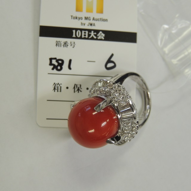 リング サンゴ 15.9mm ダイヤ Pt900 21.00g 中ソ 石目:1.50
