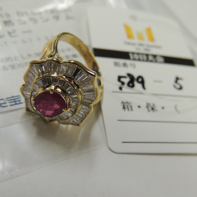 リング ルビー ダイヤ K18 6.30g 中ソ 鑑 石目:R1.13 D1.53
