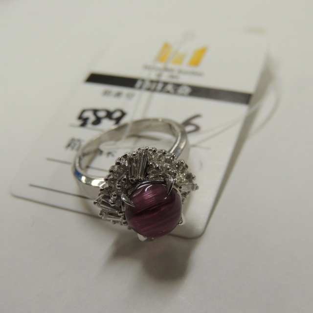 リング トルマリンキャッツアイ ダイヤ Pt900 9.70g 鑑 石目:D0.53 2.53