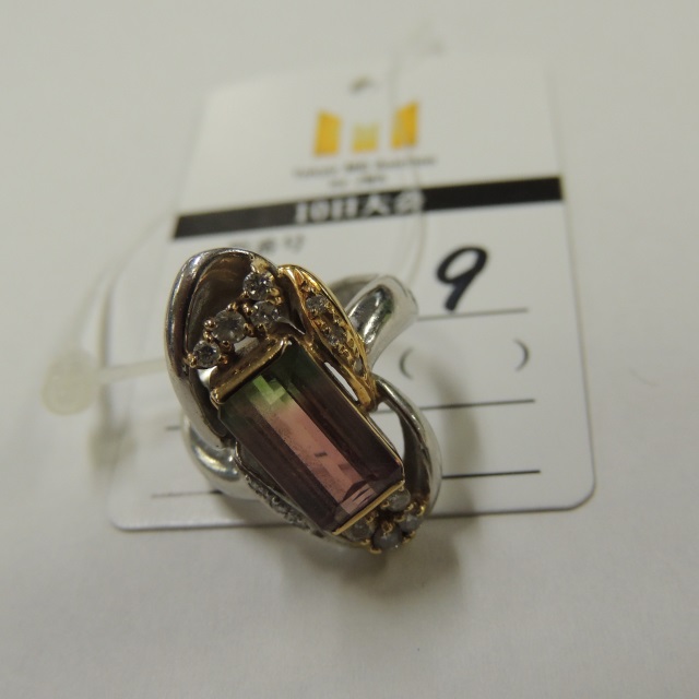 リング トルマリン ダイヤ Pt900/K18 11.60g 鑑 石目:3.70 0.26
