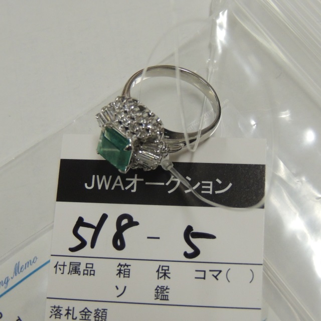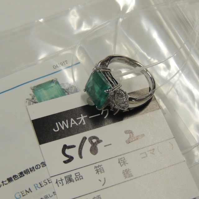 リング エメラルド ダイヤ Pt900 7.40g GRJソ 石目:E3.625 D0.30