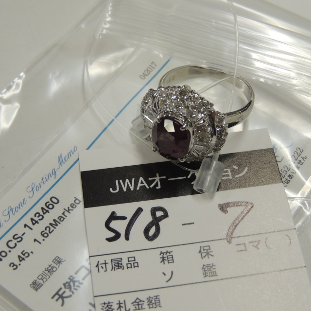 リング ルビー ダイヤ Pt900 11.20g GRJソ 石目:R3.45 D1.62
