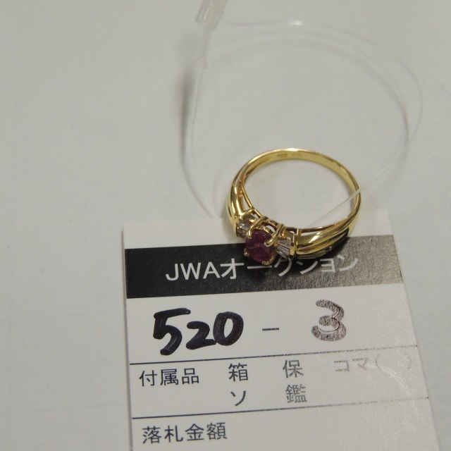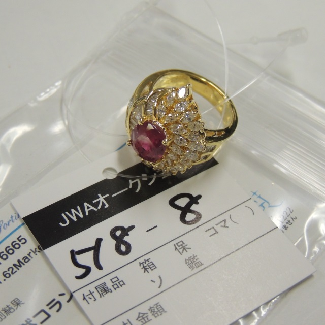 リング ルビー ダイヤ K18YG 12.40g GRJソ 石目:R2.28 D1.62