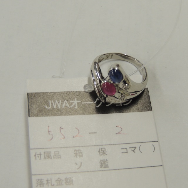 リング デザイン ダイヤ ルビー サファイヤ Pt900 5.10g 石目:R0.47 S0.51 D0.02