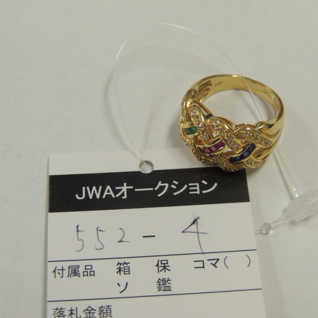 リング デザイン ダイヤ ルビー サファイヤ エメラルド K18 7.20g 石目:D0.21 R0.15 S0.15 E0.10