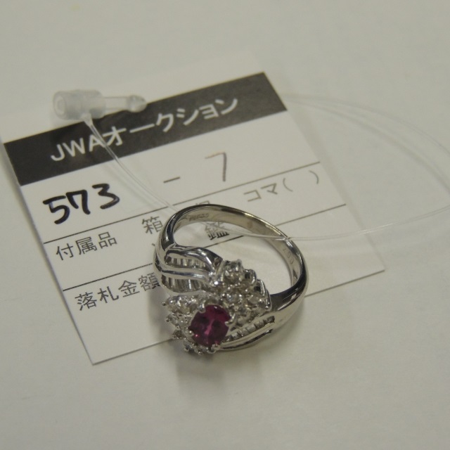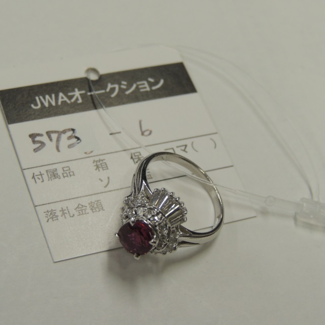 リング 赤色透明石 Pt900 7.20g 石目:0.67 0.56