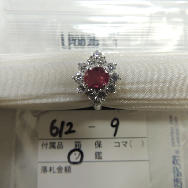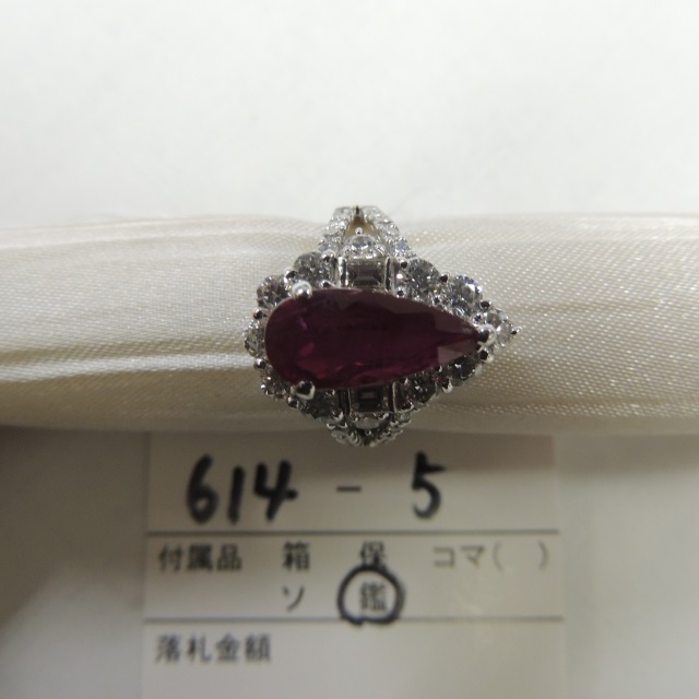 リング ルビー 非加熱ピジョンブラット ダイヤ Pt900 8.80g 鑑 石目:PBR3.279 D1.61