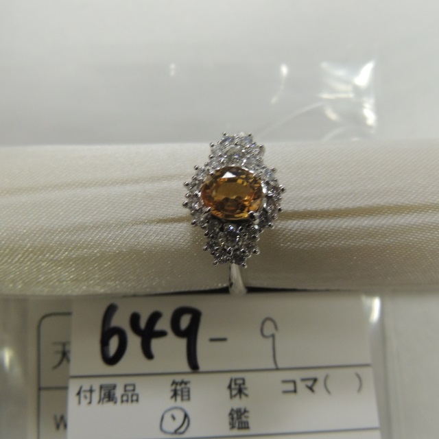 リング インペリアルトパーズ ダイヤ Pt900 6.20g 中ソ 石目:T1.57 D0.27