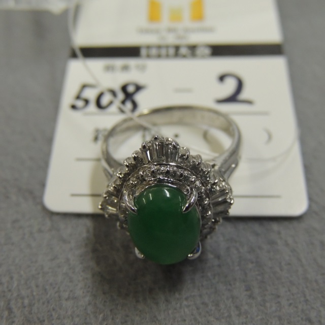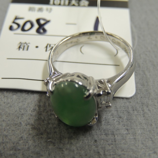 リング ヒスイ Pt900 8.10g 中ソ 石目:4.81 D0.24