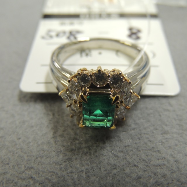 リング エメラルド Pt900/K18 11.80g 中ソ 石目:1.34 D1.11