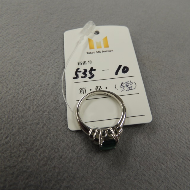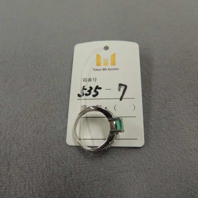 リング エメラルド ダイヤ Pt900 7.90g 中鑑 石目:E1.51 D0.40