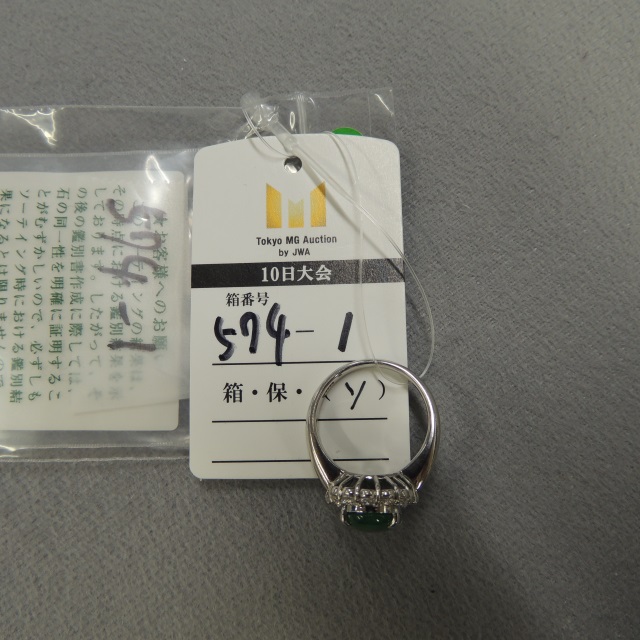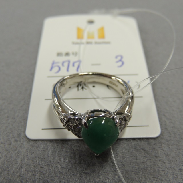 リング ヒスイ ダイヤ Pt900 8.56g 中ソ 石目:J3.34 D0.16 0.71