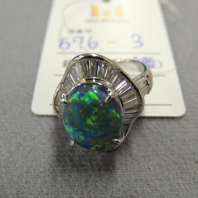 リング ブラックオパール ダイヤ Pt900 11.00g 中鑑 石目:BO4.76 D1.83