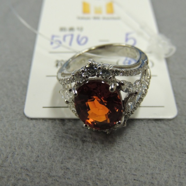 リング スペサルティンガーネット ダイヤ Pt900 8.90g 中鑑 石目:5.58 D1.04