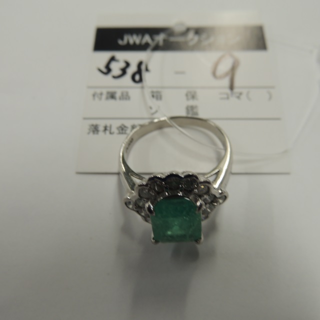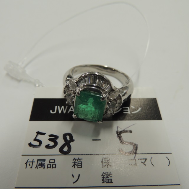 リング エメラルド ダイヤ Pt900 4.70g 石目:2.06 0.20