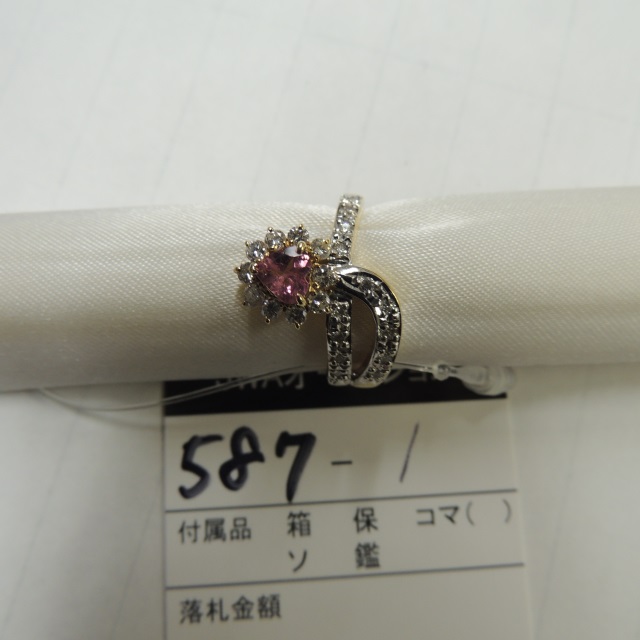 リング ピンクサファイア ダイヤ K18WG 6.10g 石目:1.50 0.08