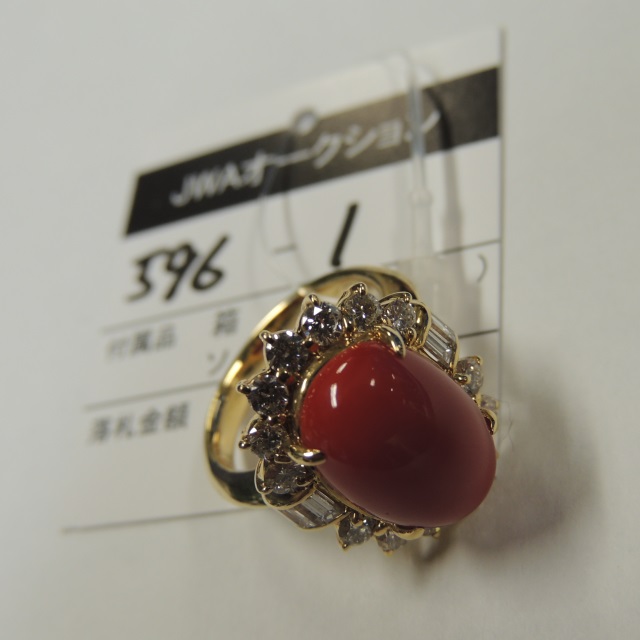 リング サンゴ ダイヤ K18YG 8.40g 鑑 石目:S6.30 D1.19