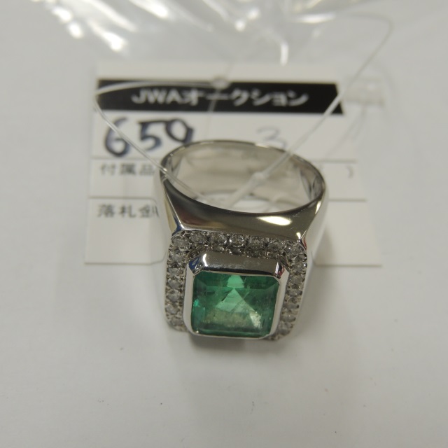リング エメラルド ダイヤ Pt900 46.60g GRJソ 石目:5.54 0.68