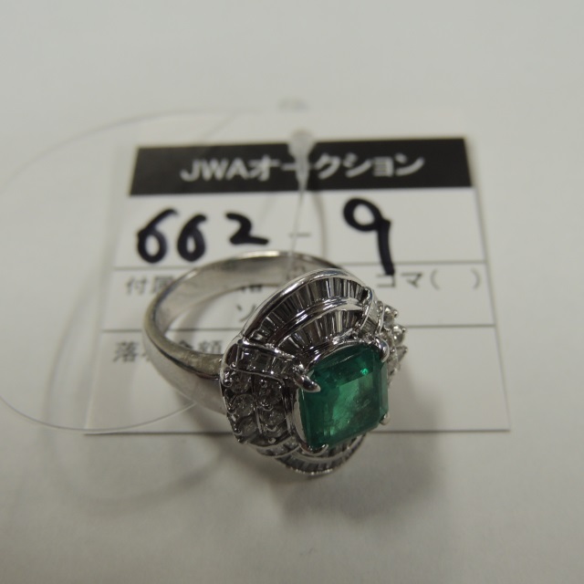 リング エメラルド ダイヤ Pt900 14.00g 石目:2.22 1.03