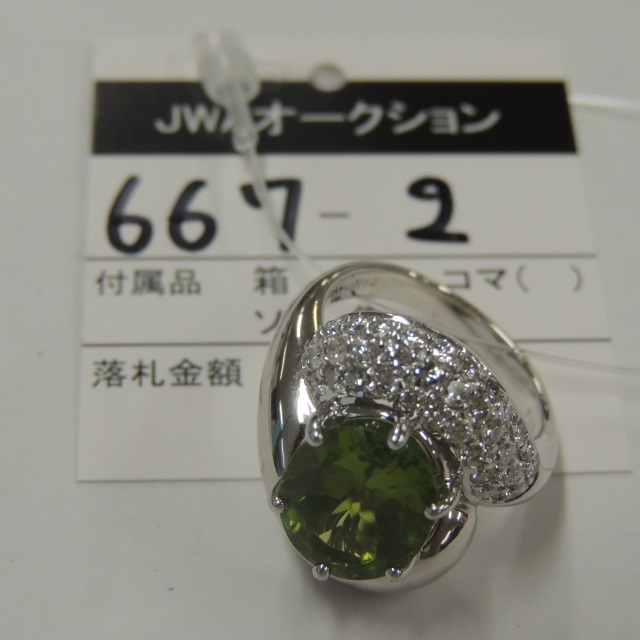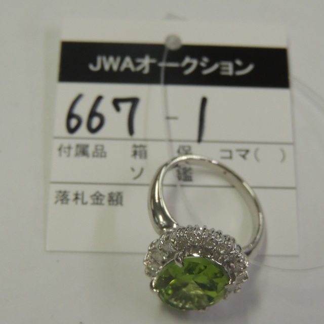 リング ペリドット ダイヤ Pt900 9.30g 鑑 石目:5.23 D0.70