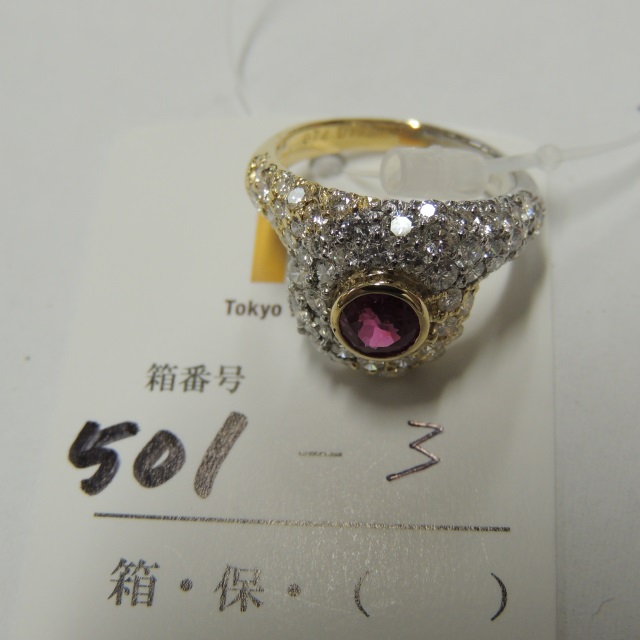 リング ルビー ダイヤ Pt900/K18 6.30g 石目:R0.74 D1.78