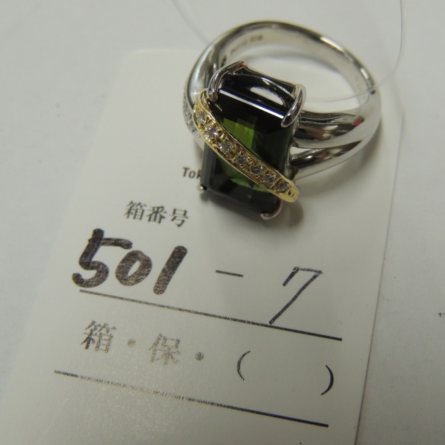 リング トルマリン ダイヤ Pt900/K18 11.60g 石目:TL7.64 D0.11
