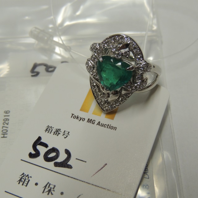 リング ハート エメラルド ダイヤ Pt900 13.70g 中ソ 石目:E2.07 D0.30