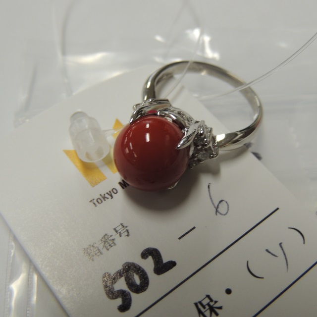 リング サンゴ 10.3mm ダイヤ Pt900 6.50g GRJソ 石目:D0.23