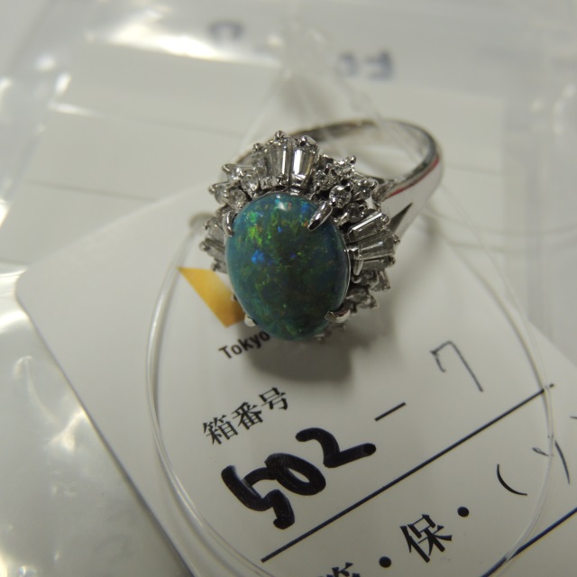 リング ブラックオパール ダイヤ Pt900 9.30g GRJソ 石目:OP2.50 D0.73