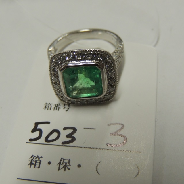 リング エメラルド ダイヤ Pt900 12.60g 石目:E3.15 1.11