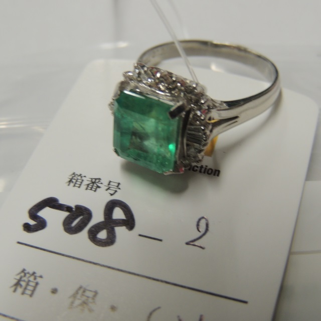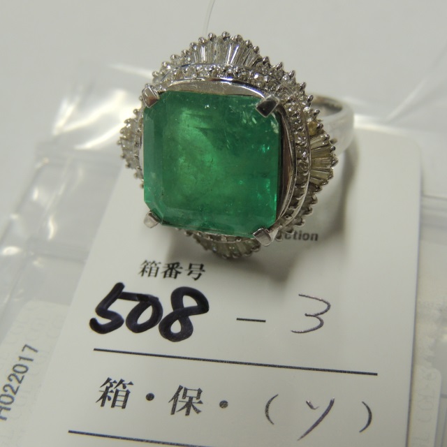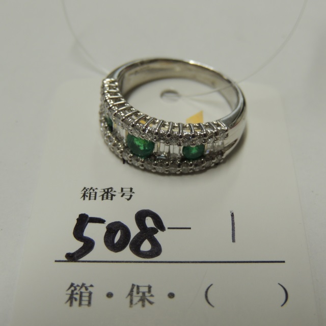 リング エメラルド ダイヤ Pt900 6.70g 中ソ 石目:3.03 0.51