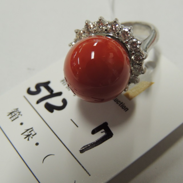 リング サンゴ 14.2mm ダイヤ Pt900 14.30g 石目:1.11